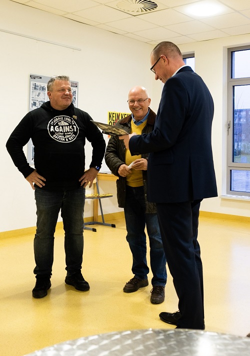 und der AG Schule ohne Rassismus – Schule mit Courage vertreten durch unseren Schüler Jan-Matis Bertermann (BG 12) mit Axel Michaelis.
