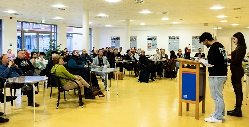Begrüßt wurden die Anwesenden durch Sofiia und Safa, Schülerin und Schüler der Berufsvorbereitungsklasse AV-BO-22f.