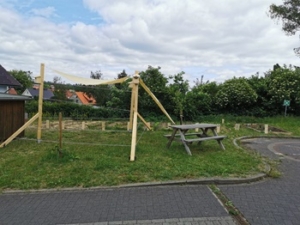– Beschattung mit Strandsegeln, mittelfristig ranken insektenfreundliche Pflanzen hoch