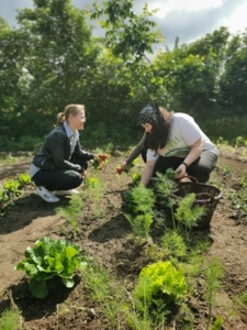Wir sind alle sehr stolz und glücklich, dass es losgeht und unser Gemüse endlich u.a. in den Salaten und Brötchen der Cafeteria landet und genossen werden kann. Guten Appetit!