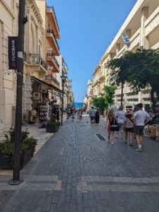 kreativ zu gestalten. Da wir nah an Heraklion, der nächstgrößten Stadt, waren, konnten wir uns dank der kostenlosen Bustickets, die uns von der Organisation vor Ort zur Verfügung gestellt wurden, flexibel bewegen und Heraklion besuchen. Dort konnten wir durch die Stadt schlendern und besondere Sehenswürdigkeiten