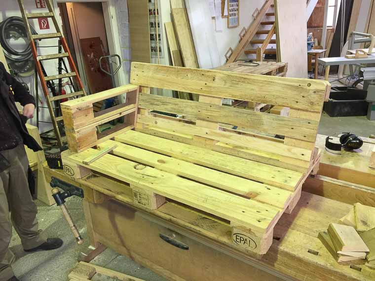 Im Rahmen der Projektwoche des 12. Jahrganges befassten sich acht Schüler/-innen mit dem Bau neuer Sitzmöglichkeiten aus Europaletten. Diese befinden sich an verschiedenen Plätzen in der Schule. Die „Advanced-Version“ mit USB-Steckdosen befindet sich in der Eingangshalle.