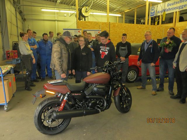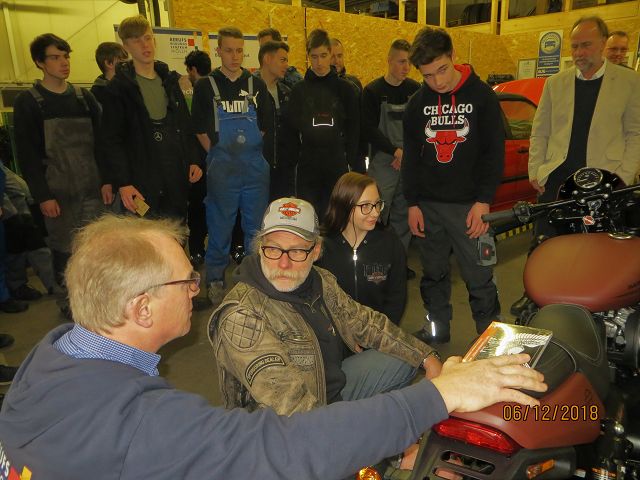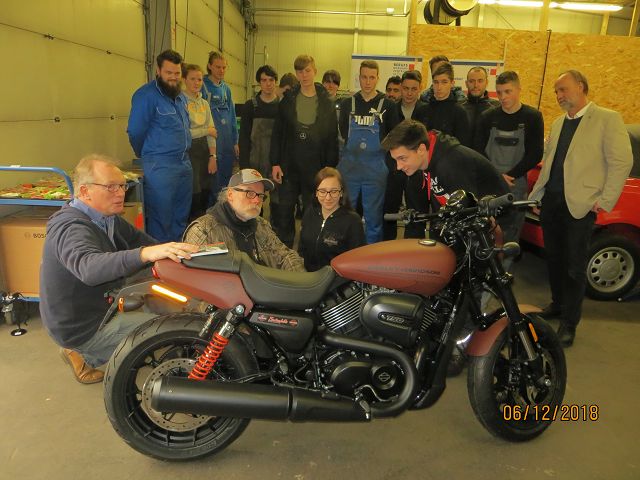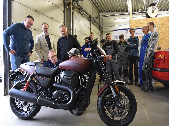 Die KFZ-Abteilung des BBZ Mölln hat zu Ausbildungszwecken ein Motorrad der Marke Harley Davidson erhalten. Die Übergabe des Motorrads fand am 6.12. 2018 in der Überbetrieblichen Ausbildungswerkstatt der Kfz-Mechatroniker statt.